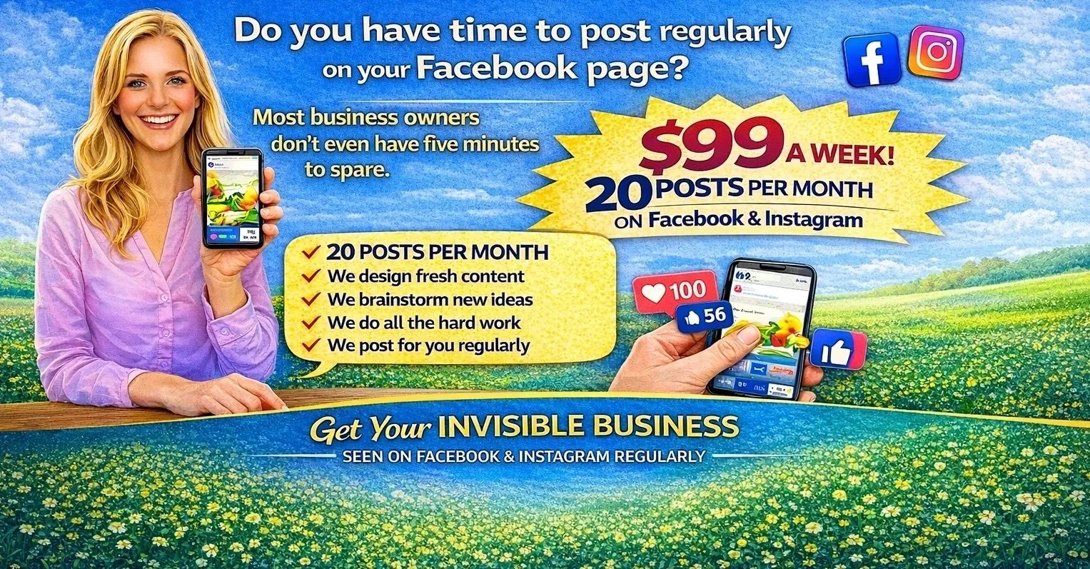 Many small businesses simply don’t have time to post regularly on social media. When pages go quiet, customers stop noticing. Our mission is to keep your business visible with fresh content posted almost daily — not just occasionally. More consistent posts mean more visibility, stronger brand recognition, and more potential customers discovering your business. 🚀